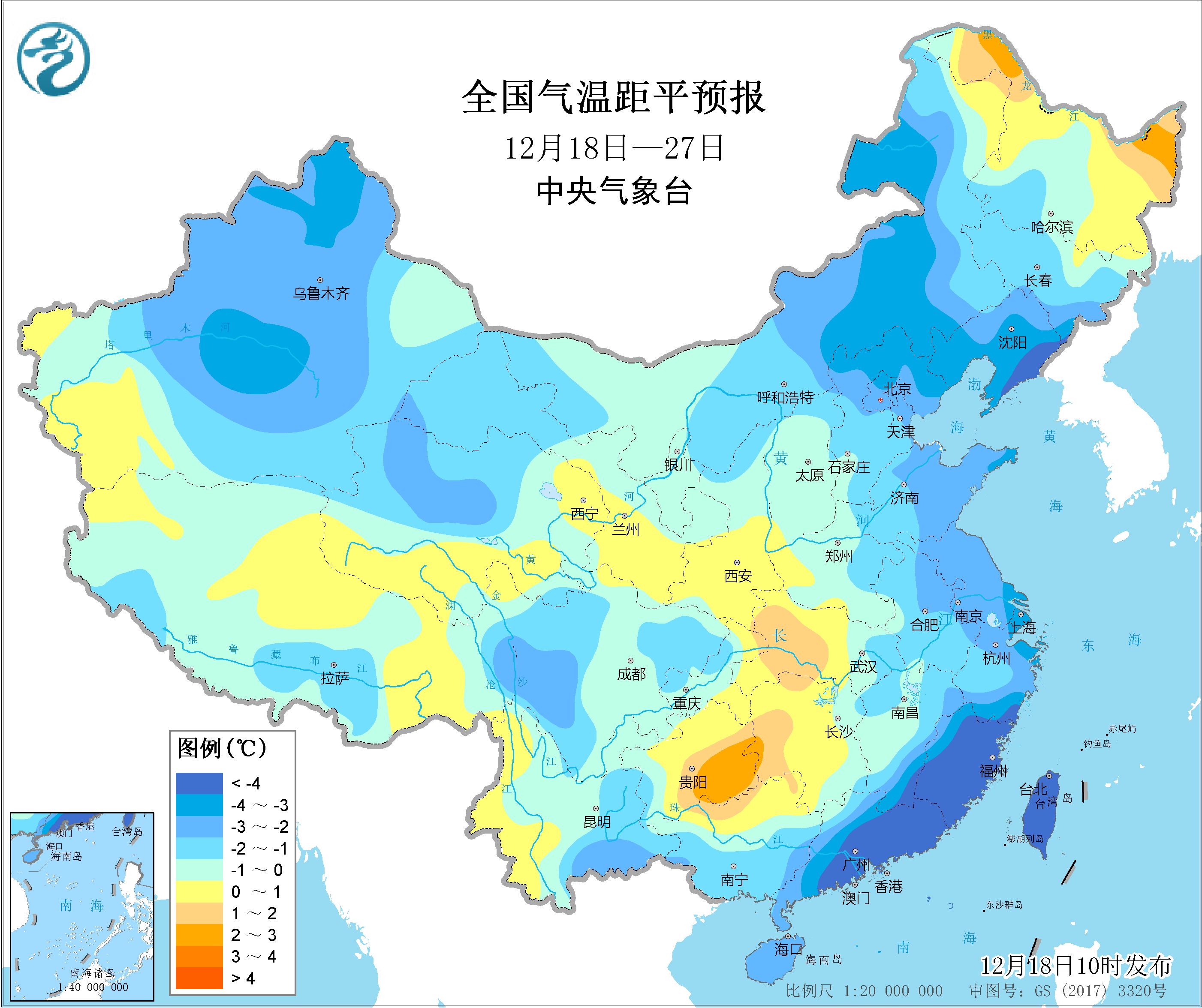 未來10天,江南中東部、華南東部等地氣温較常年同期偏低3~5℃。期間,18-20日,江南中東部和南部、華南大部以及四川東部、雲南東南部、湖南西北部等地的日最低氣温較歷史同期偏低5℃以上,其中江南中東部、華南中東部以及四川東部等地的日最低氣温較歷史同期偏低7℃以上。