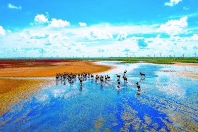 位於江蘇省中東部的鹽城擁有廣闊的濱海濕地,這裏海陸交替,塑造了陸地、淡水、海岸帶及海洋等多種生態系統,孕育了豐富的生物多樣性。2019年7月,由東台條子泥濕地領銜的中國黃(渤)海候鳥棲息地(第一期)被列入世界自然遺產名錄。在今年11月舉辦的《濕地公約》第十四屆締約方大會期間,鹽城市獲頒“國際濕地城市”證書,讓這片壯闊的濕地再度備受矚目。