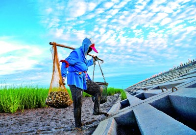 潮起一片汪洋,潮落一馬平川。獨特的濕地風光也吸引了八方來客。日出時分,人們光着腳丫、捲起褲腿奔向灘塗,暢享趕海樂趣。來到這裏的訪客們有機會在參觀自然遺產的同時,體悟人與自然和諧共生之道。行走在灘塗上,閉上眼睛,深吸一口大自然的氣息,彷彿又平添了無限活力。