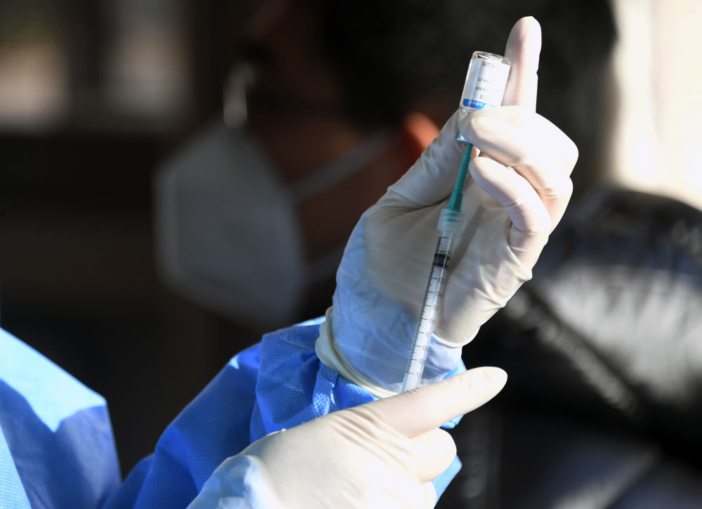 12月17日,在北京市海淀區田村路街道新冠疫苗臨時接種點,醫護人員做鼻噴第二劑次加強針接種前準備工作。