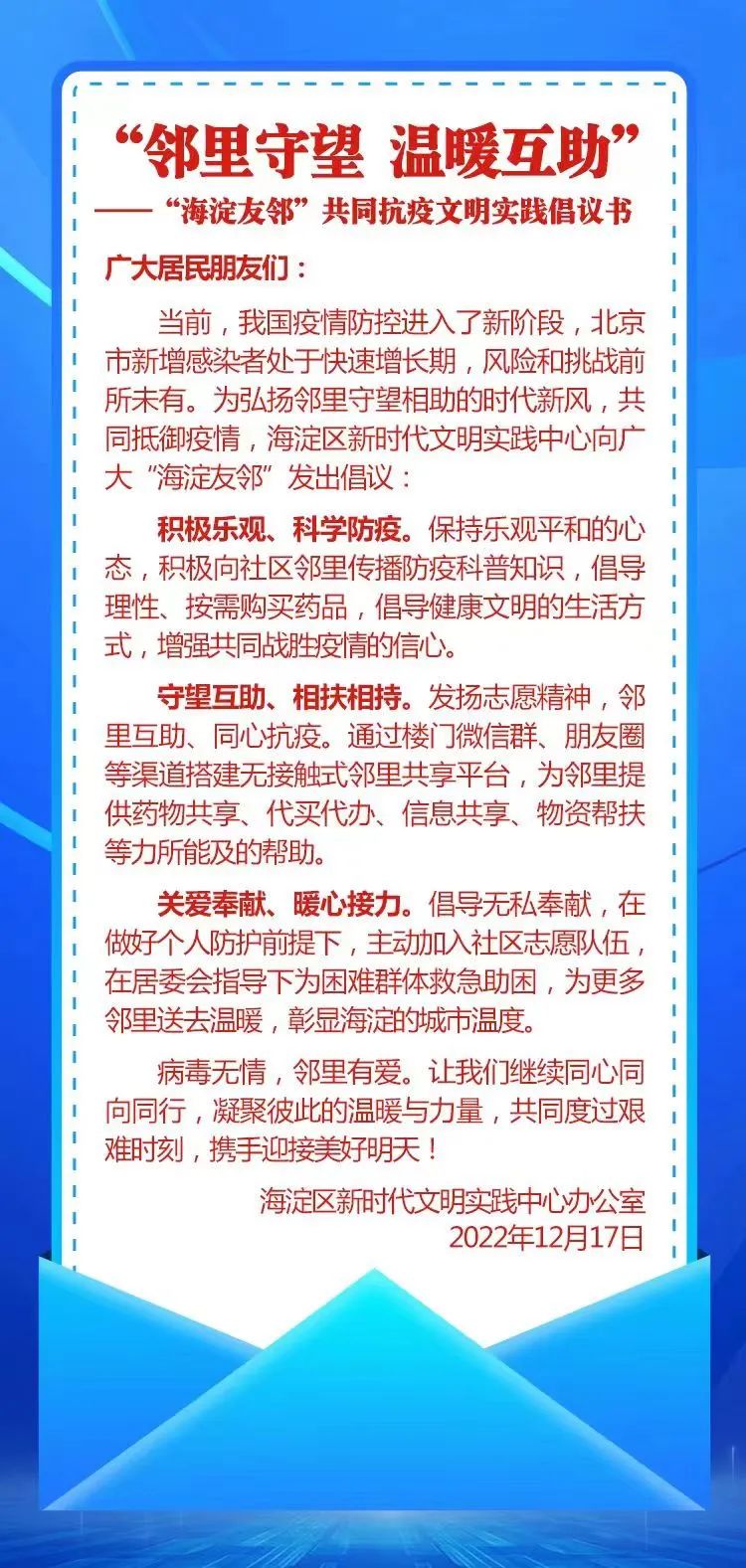 北京海淀發佈“友鄰”共同抗疫倡議書,居民羣裏温暖互助