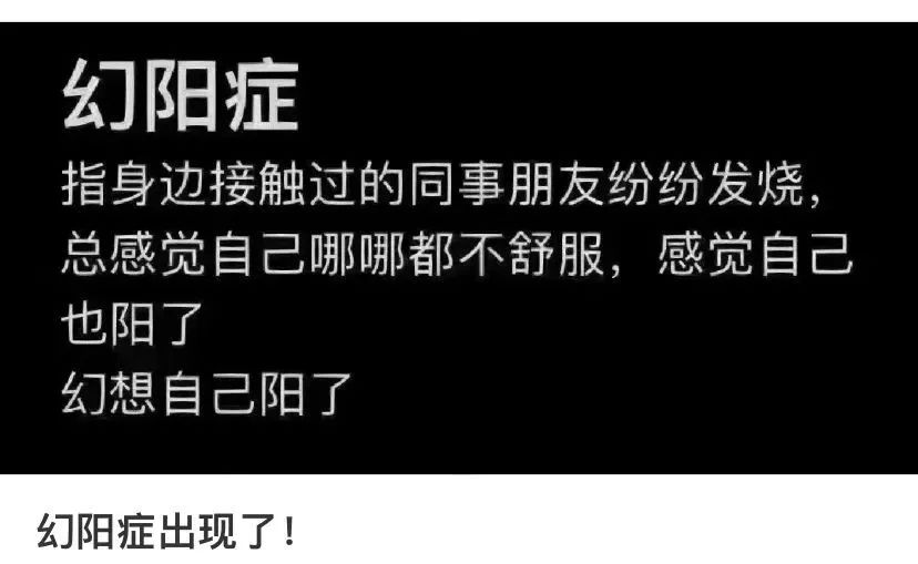 ,一會兒覺得嗓子疼一會兒覺得身體疼又一會兒覺得自己沒事。明知道陽不陽自己説了不算,別管了,剛給自己洗完腦就聽説XXX了,我肯定是得了幻陽症。