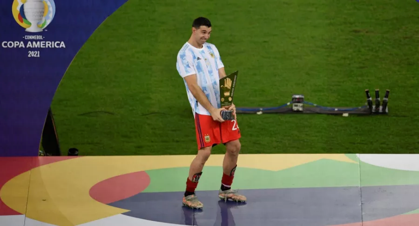 奪冠頒獎禮上阿根廷門將做爭議舉動,去年美洲盃奪冠時曾有類似舉動