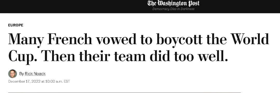 怎奈,在法國隊身後敗人品的人太多了。美國《華盛頓郵報》的一篇文章就指出,要不是因為法國隊本屆世界盃表現得太好,許多法國人原本是要因為種種政治原因去“抵制”這屆世界盃的。