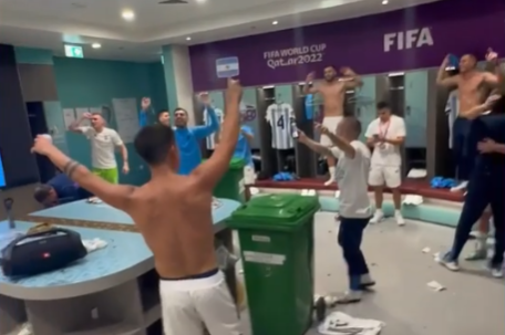 一段網傳視頻顯示,在14日戰勝克羅地亞隊後,阿根廷隊的球迷在更衣室激動地唱起了一首西班牙語歌曲《巴西人,你們怎麼了》(Brasilero que paso),雖然這首歌最初是調侃老對手巴西隊的,但後來也被阿根廷隊以及球迷作為給自己加油的常用歌曲。