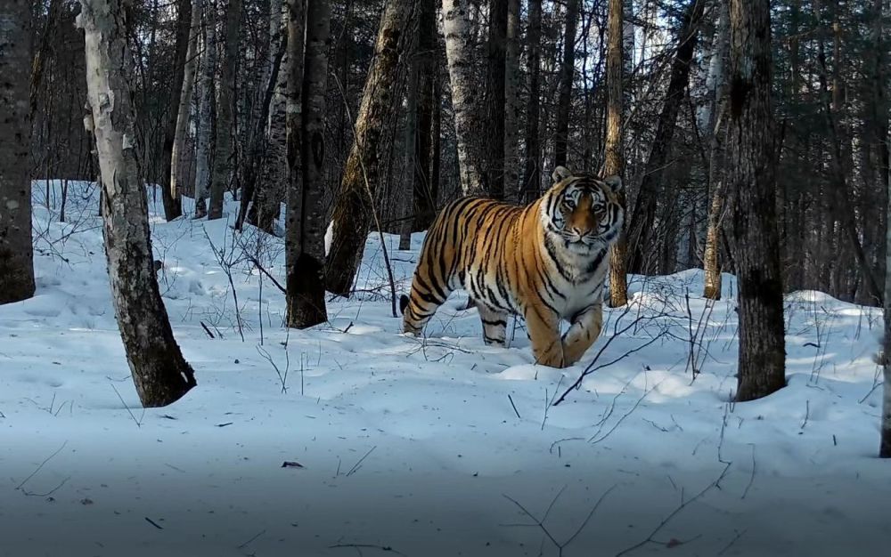 近日,吉林省天橋嶺林業局動物保護工作人員在整理紅外相機資料時,發現12月15日在新開林場轄區內拍攝到了一隻野生東北虎,視頻中這隻野生東北虎威風凜凜,在森林中散步。