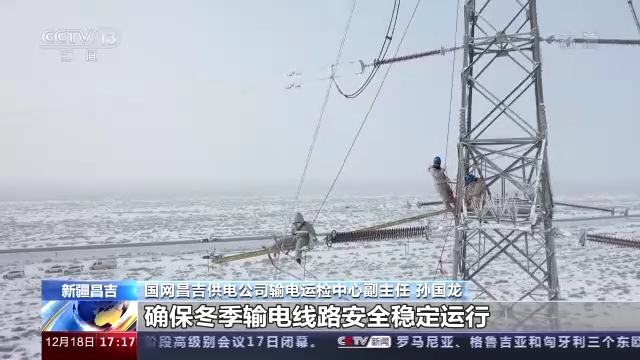 *國網昌吉供電公司輸電運檢中心副主任 孫國龍:*我們應用北斗通信+智慧監控網絡平台對昌吉州主網線路99個覆冰隱患點開展温濕度和導地線覆冰厚度監測,做到即時監測、即時預警、及時處置,確保冬季輸電線路安全穩定運行。