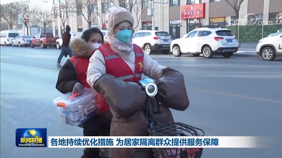 央視網消息 (新聞聯播):各地持續優化各項措施,為居家隔離羣眾提供服務保障。