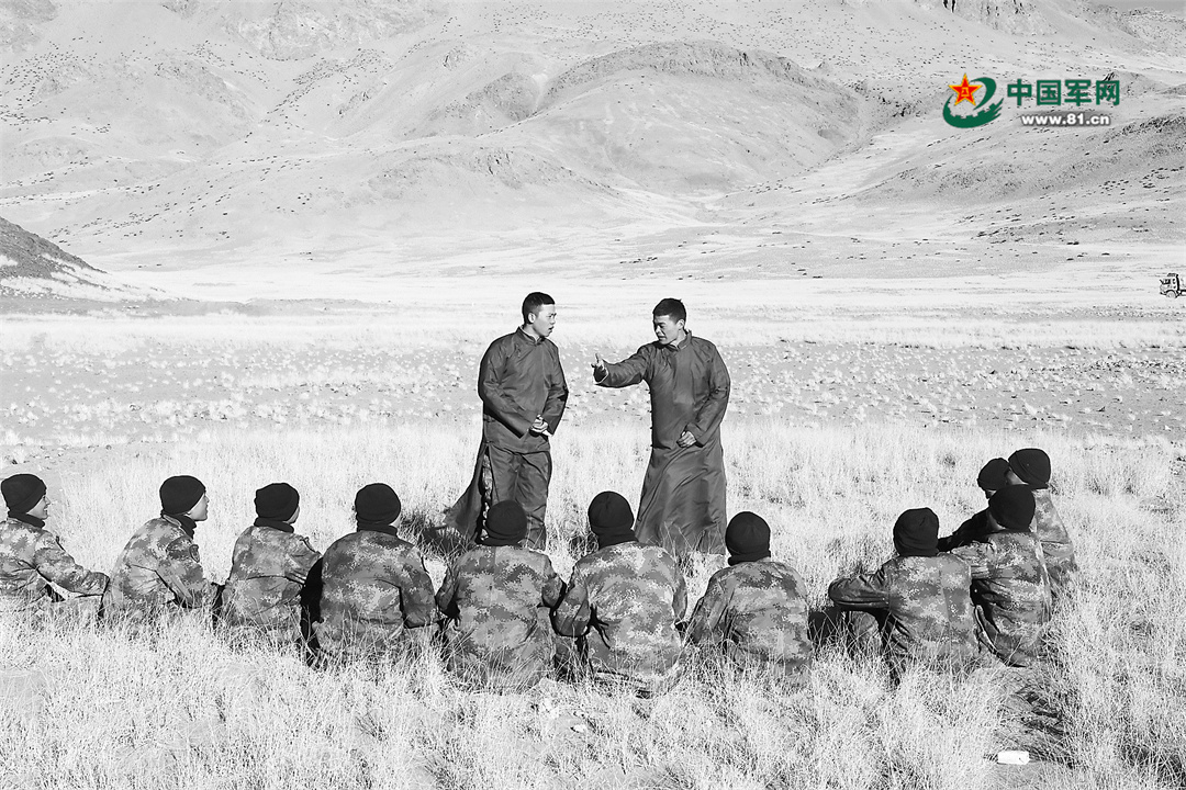 正在雪域高原駐訓的新疆軍區某團相聲興趣小組“喜顏社”內,上士趙杭啓和中士趙錫洋,正緊鑼密鼓地排練他們的迎新晚會新作《高原趣事》。