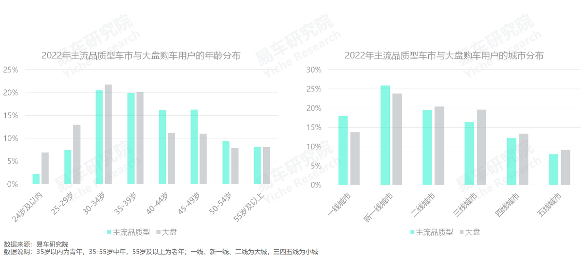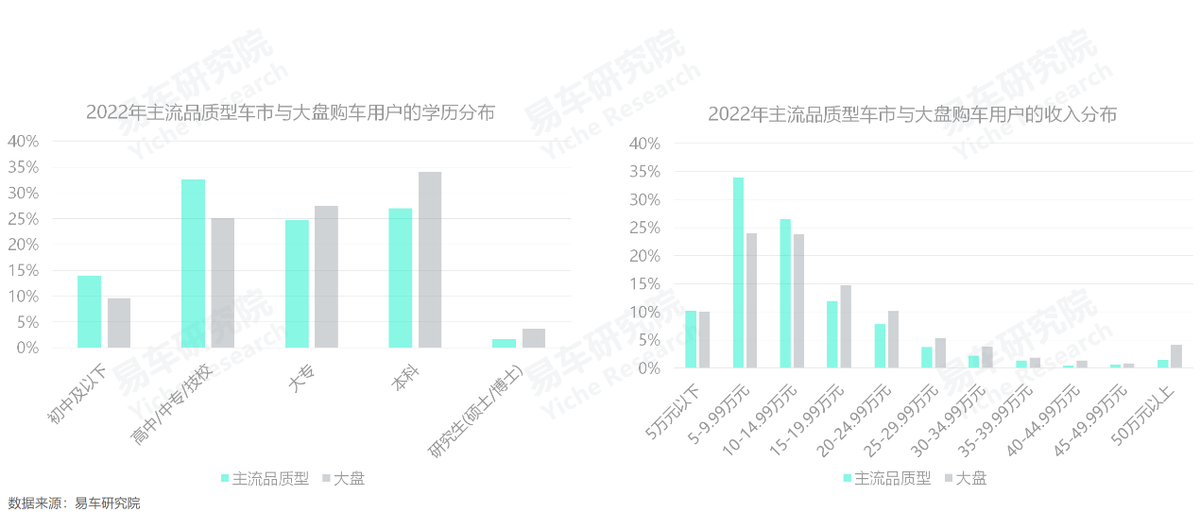 主流品質型車市雖然更以中年、大城為主,但用户的學歷與收入水平不如大盤,部分強化了理性與務實的購車訴求。