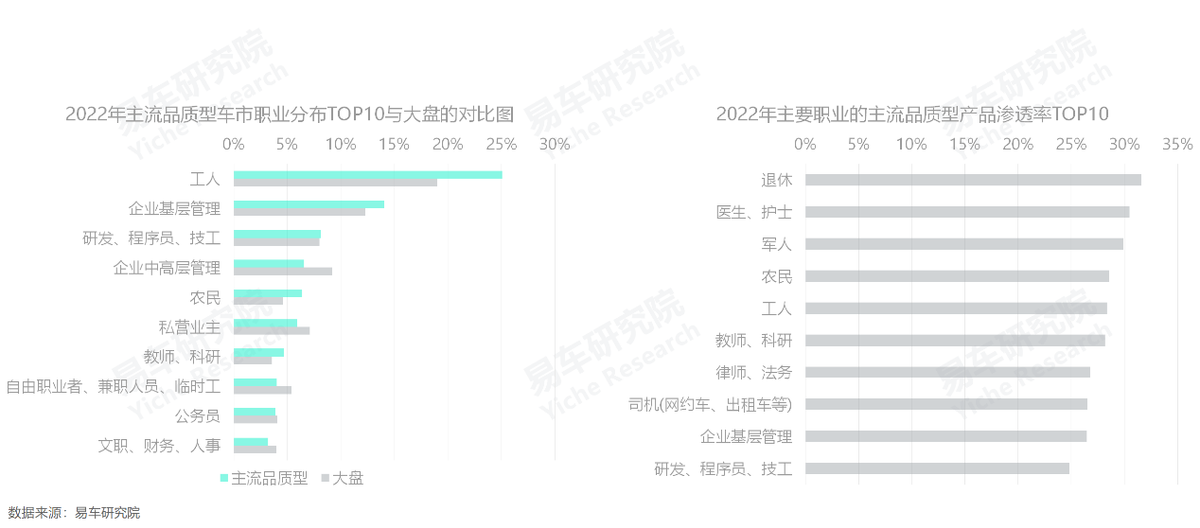 主流品質型車市更以製造、建築等傳統職業為主,互聯網、金融等高收入職業滲透較低,部分強化理性與務實購車訴求。