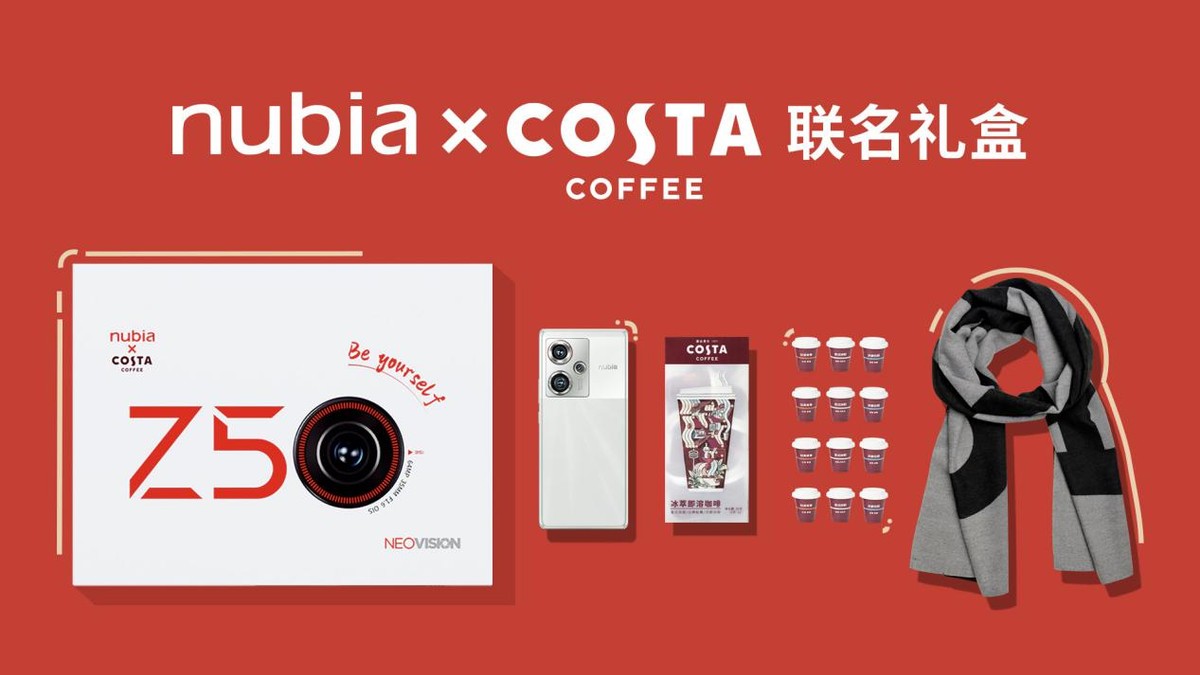 同時,努比亞還攜手咖啡文化的經典代表、全球年輕人喜愛的咖啡品牌COSTA,推出限量冬日聯名禮盒套裝,售價4199元,內含努比亞Z50手機一部、COSTA冬日暖心圍巾一條和COSTA冰萃即溶咖啡等更多福利周邊。