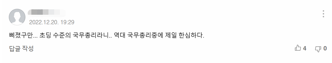 更有韓國網民表示:“看來總理當時是鬧脾氣了……這是什麼低級總理啊,讓人慚愧。”↓