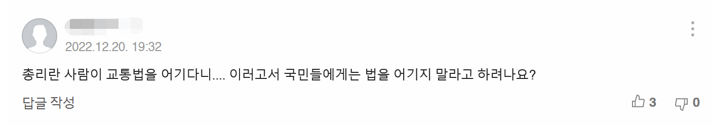 還有網民在《國民日報》報道下留言諷刺道:“當總理的人卻違反交通法,是要以此‘現身説法’,告誡國民不要違法嗎?”↓