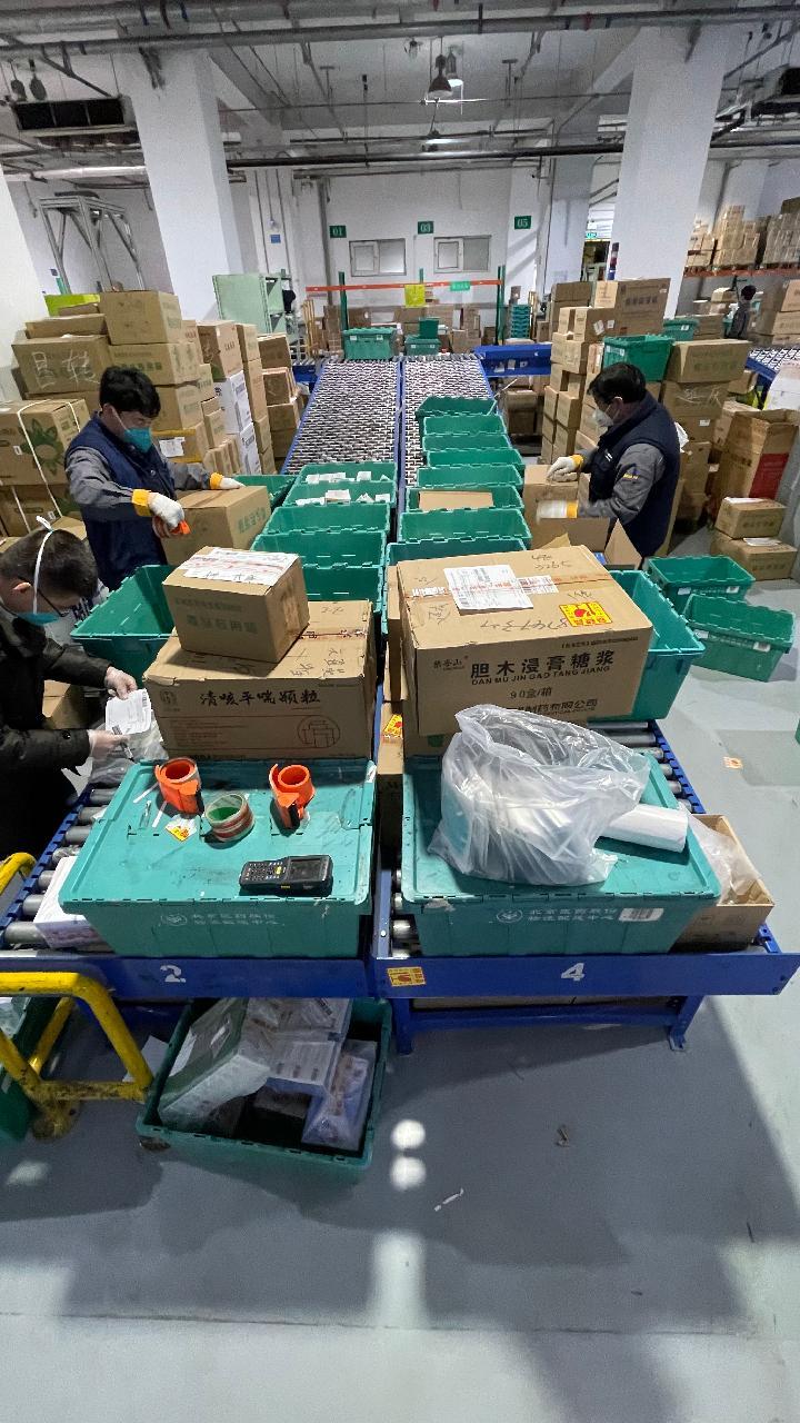 記者在位於北京市西城區的華潤醫藥商業集團看到,大大小小各類貨車停滿了辦公場所院內院外。叉車忙碌奔波於庫房,分揀傳送帶快速運轉,員工目不轉睛地專注核對、貼標。