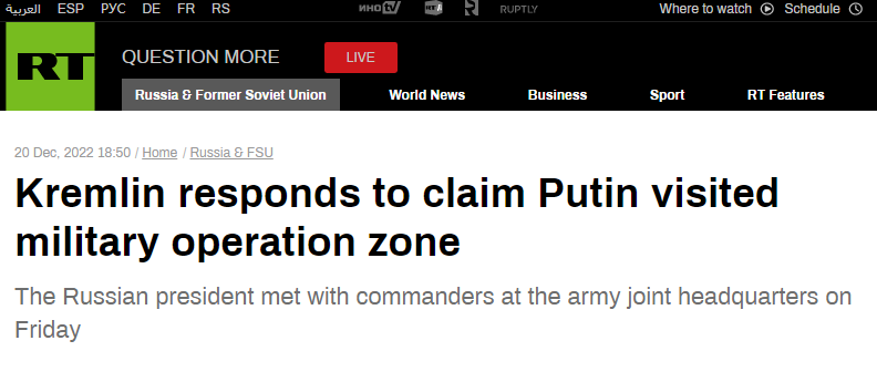 RT稱,古魯廖夫認為,普京視察的地點可能是在“此前曾屬於烏克蘭領土的區域”。