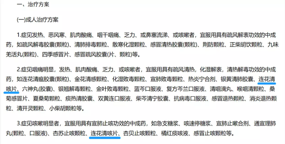 日前,國家中醫藥管理局發佈《新冠病毒感染者居家中醫藥干預指引》,針對五類成人常見症狀發佈治療方案,其中連花清咳片被兩次提及。