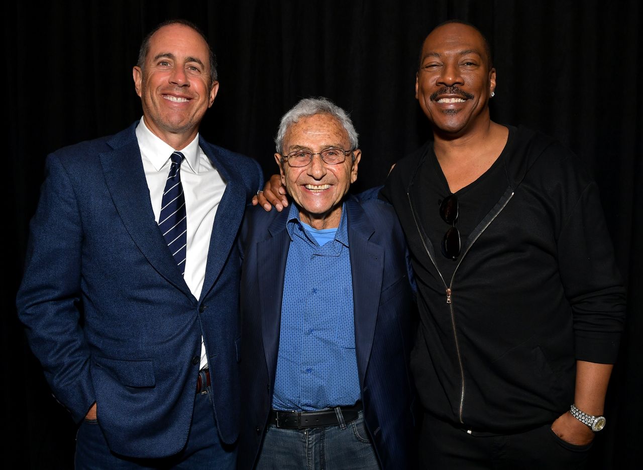 2019年的傑瑞·宋飛、喬治·夏皮羅與艾迪·墨菲。圖片來源:艾瑪·麥金太爾/蓋蒂圖片社夏皮羅還擔任了考夫曼多部電視特輯的執行製片人,包括1980年的《安迪·考夫曼在卡內基音樂廳》。