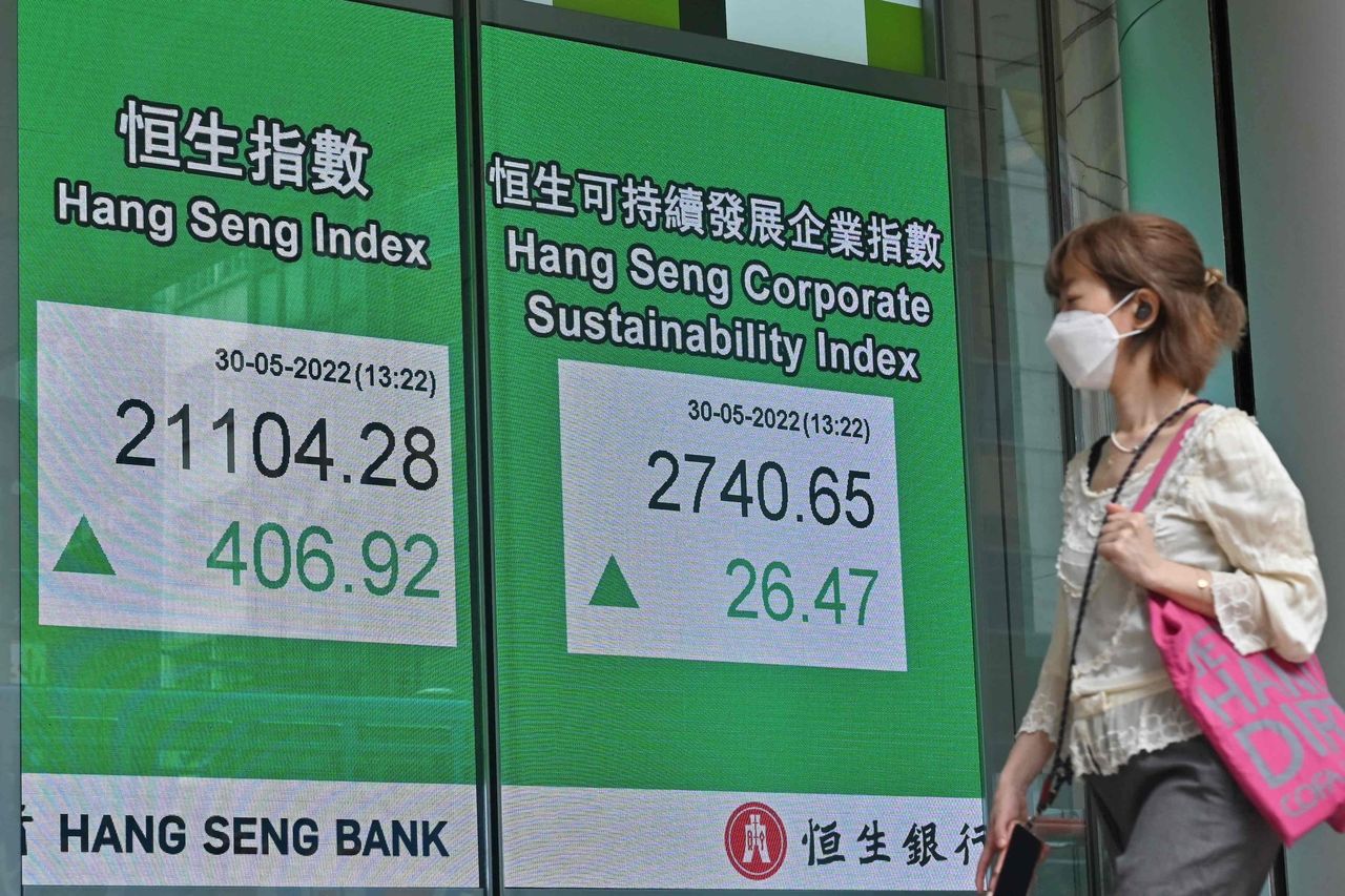 週一全球股市普遍上漲。圖片來源:peter parks/法新社/蓋蒂圖片社在亞洲,上證綜合指數上漲0.6%,香港恒生指數大漲2.1%。