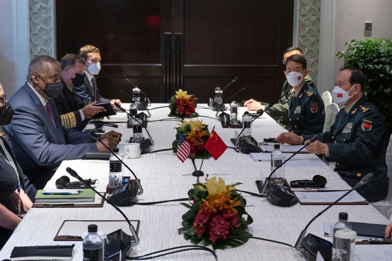 在新加坡防務會議期間舉行近一小時閉門會談後,雙方發佈的通報顯示緊張局勢有所緩和。此前拜登總統近期聲稱若北京武力攻台美軍將介入干預。