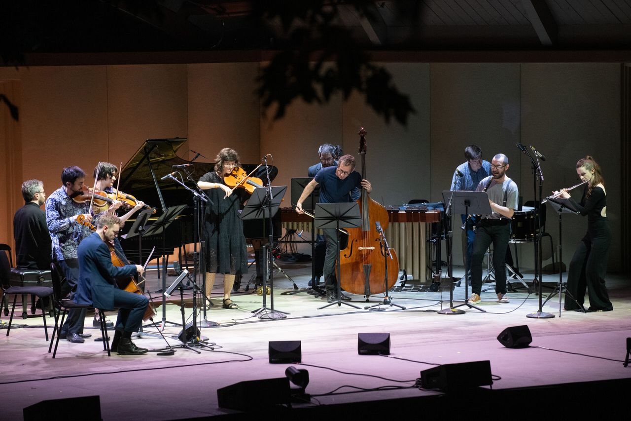 自2019年以來,音樂節慶活動(今年是第76屆)首次基本恢復到疫情前的狀態(儘管需要疫苗接種證明和自願佩戴口罩)。這無疑為規模可觀但不過分擁擠的人羣增添了歡樂氣氛。看到建築師弗蘭克·蓋裏和作曲家約翰·亞當斯等傑出人物在主會場利比碗劇場漫步也是如此。但最重要的是,今年音樂總監的選擇——名為AMOC(美國現代歌劇團)的跨學科團體——為音樂節注入了極其樂觀的精神,更不用説其合作精神了。儘管奧海長期以來一直將音樂總監的角色委託給多人擔任,但這一數字在20年前愛默生四重奏擔任此職之前一直低於四人。2009年,器樂團體第八黑鳥擔任了這一職位,但從那時到現在,這一頭銜每年只授予一個人。