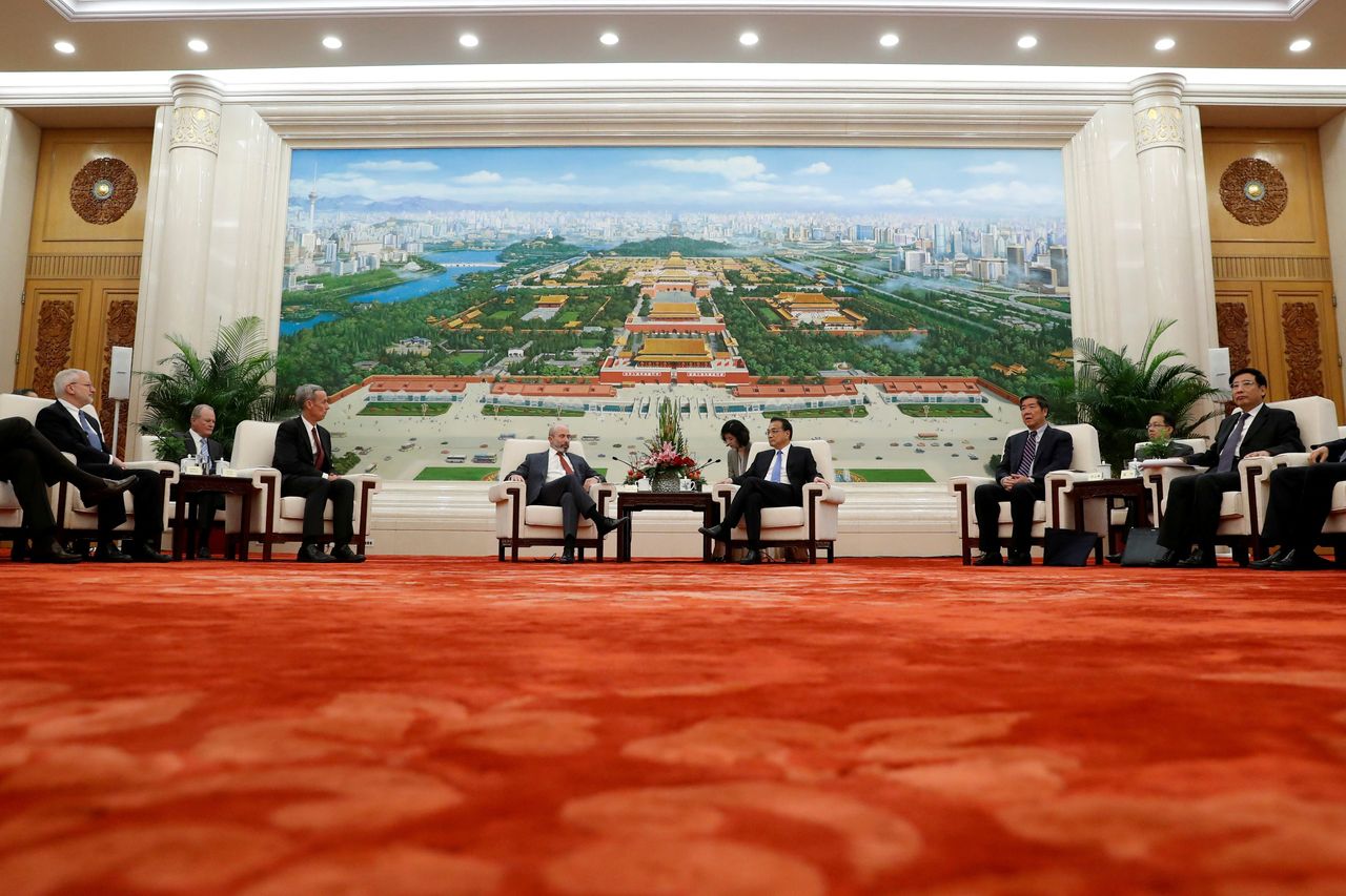 2019年,安達保險首席執行官埃文·格林伯格在北京與中國國務院總理李克強會面。圖片來源:Pool News/Reuters在擬定的演講中,這位被中國高層官員稱為"小格林伯格"的年輕高管承認,由於安達在華商業利益,他主張接觸的立場"可能招致批評"。