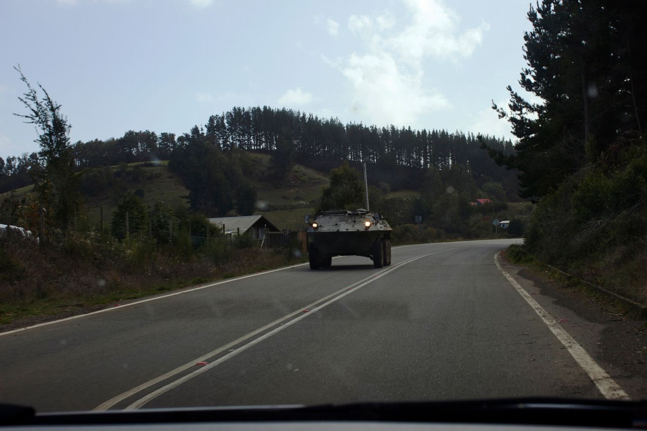最近,一輛智利裝甲警車在阿勞卡尼亞大區的一條道路上巡邏,那裏生活着數十萬馬普切人。激進分子實施的縱火和槍擊事件的其他受害者還包括馬普切人。根據襲擊現場留下的粗魯信息,更激進的馬普切人譴責與林業公司合作的馬普切同胞是事業的叛徒。