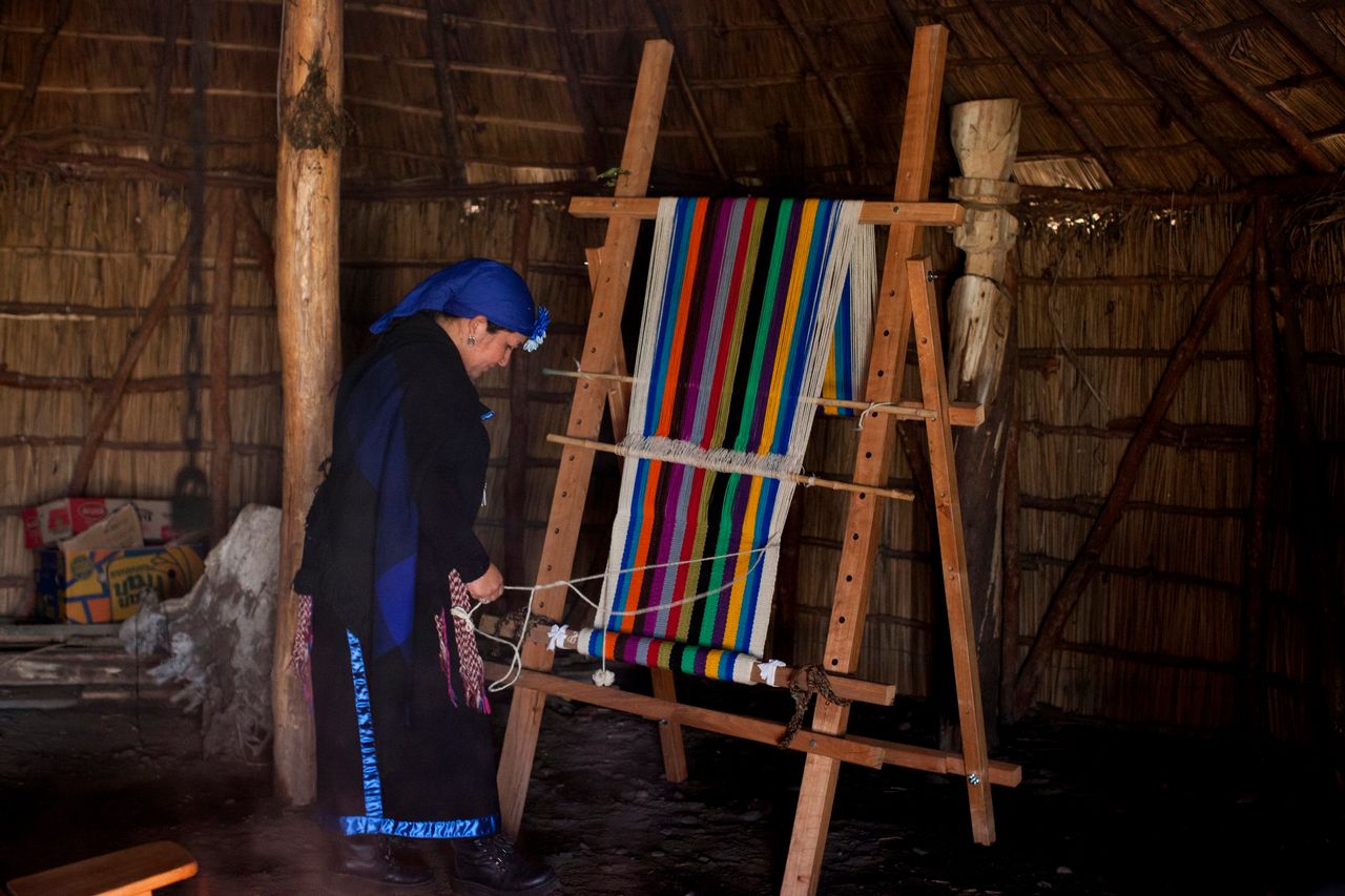 阿勞卡尼亞地區薩韋德拉港,一名馬普切婦女正用羊駝毛在織布機上製作斗篷和背心。馬普切人曾擊退西班牙殖民者,卻在19世紀末被入侵的智利軍隊和歐洲移民奪走祖傳土地,這些歷史創傷正是博裏奇公開表示上任後決心彌合的。