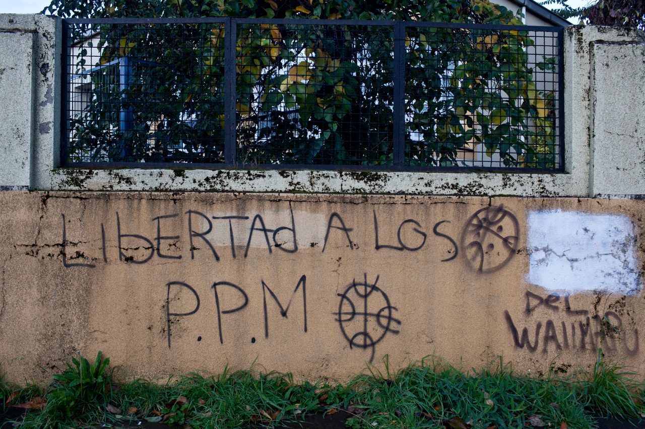 特木科主要監獄前的塗鴉寫着:“釋放馬普切政治犯”。