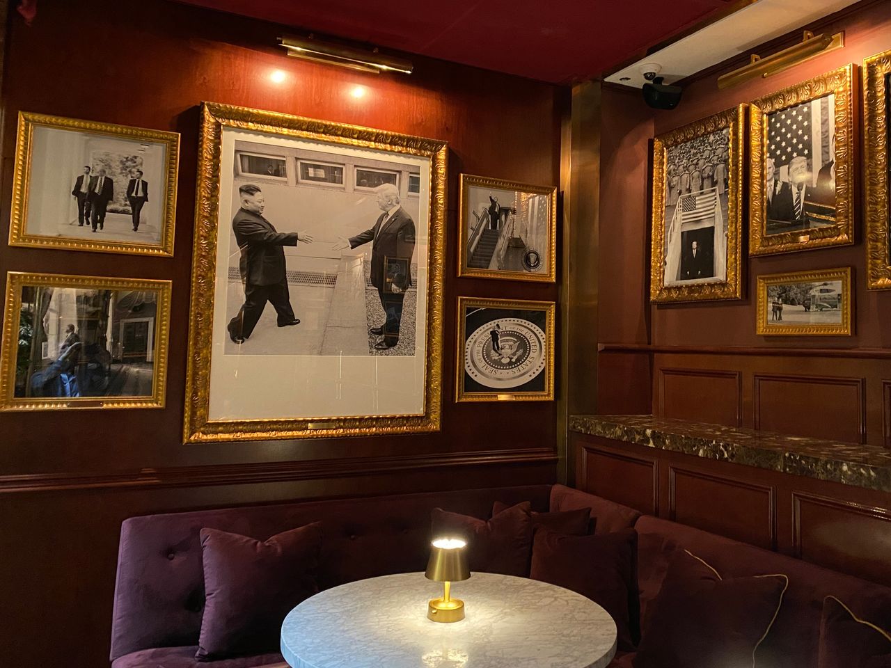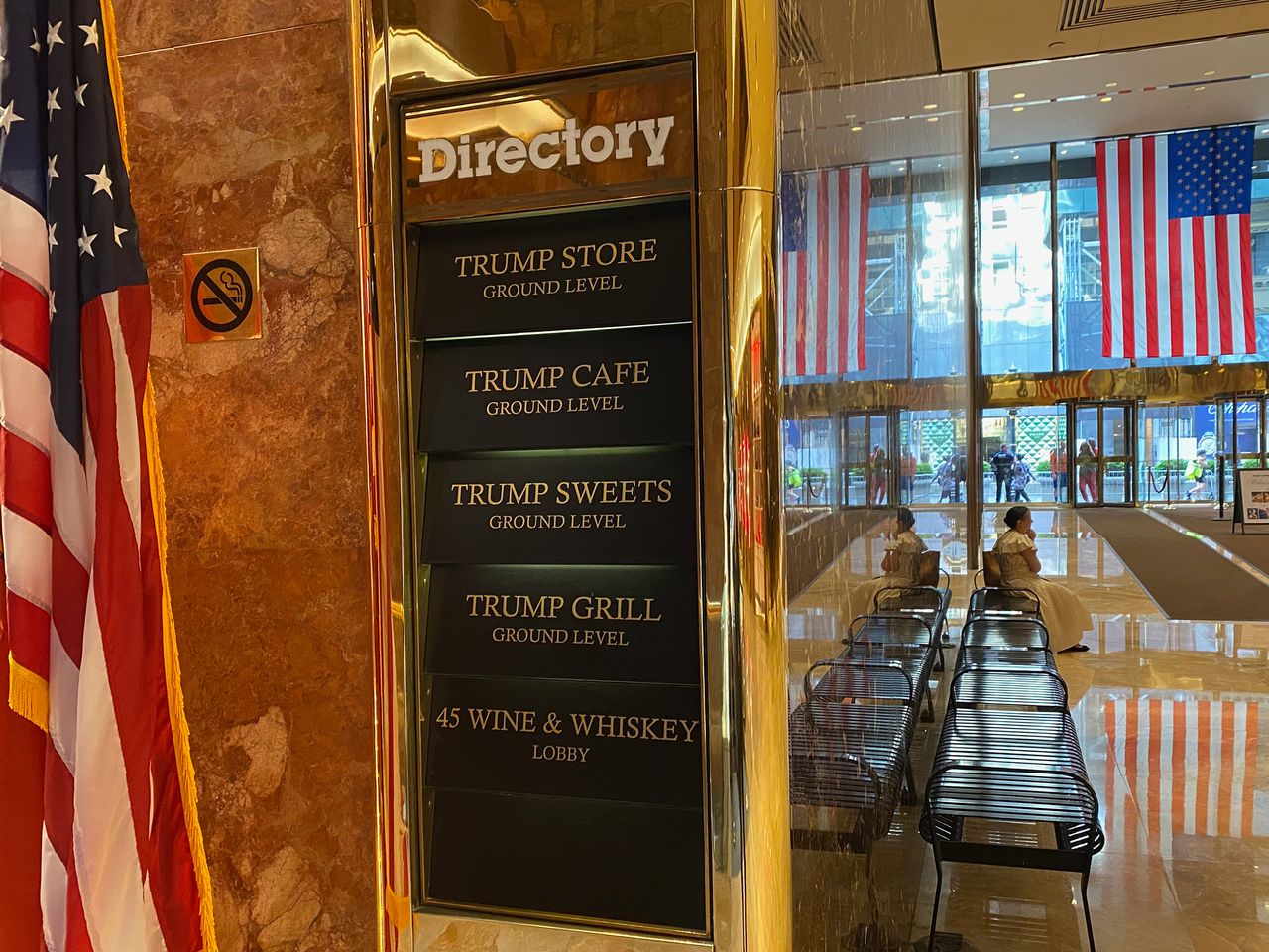 但在第五大道與57街交匯處這一核心位置的特朗普大廈零售中庭內,主題始終如一:一切圍繞特朗普。入駐商户包括特朗普糖果店、銷售服裝的特朗普商店,以及"45號葡萄酒與威士忌"酒吧——該酒吧陳列着唐納德·特朗普擔任美國第45任總統時期的照片、文件等紀念品。