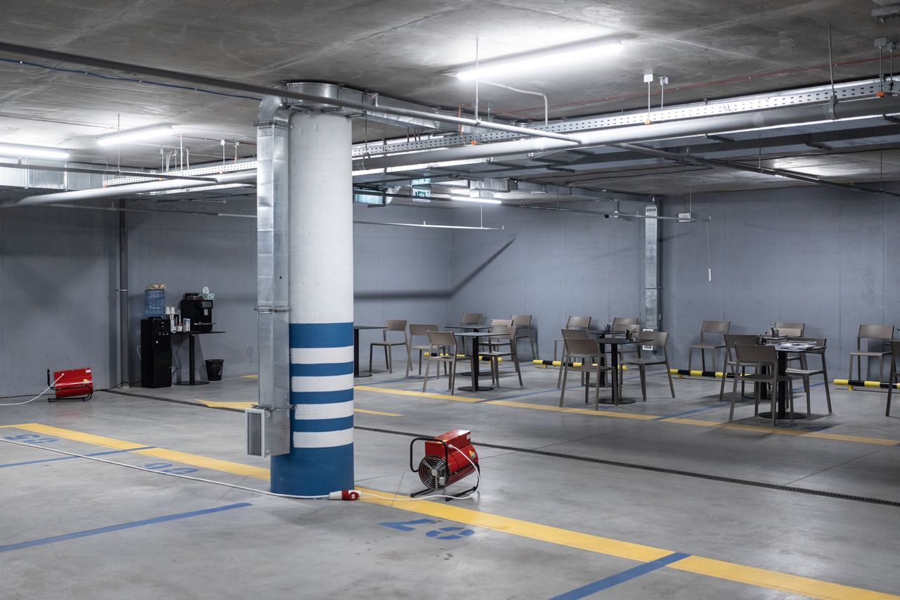 在基輔的Naftogaz辦公室下方,一個地下停車場被臨時用作防空洞。