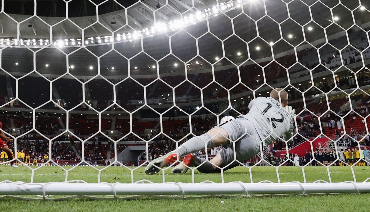安德魯·雷德梅恩撲出亞歷克斯·瓦萊拉點球,助球隊5-4贏得點球大戰。照片:共同社/祖瑪通訊社沒有多少教練會嘗試這種心理戰術。首先,球隊需要在近120分鐘比賽後仍保留至少一個換人名額——大多數球隊做不到。但在極少數情況下,精於算計的教練會為這種時刻預留後手。國際足壇最著名的例子發生在2014年,荷蘭主帥範加爾施展了世界盃上前所未有(至今仍未被複制)的奇招——他更換了門將。