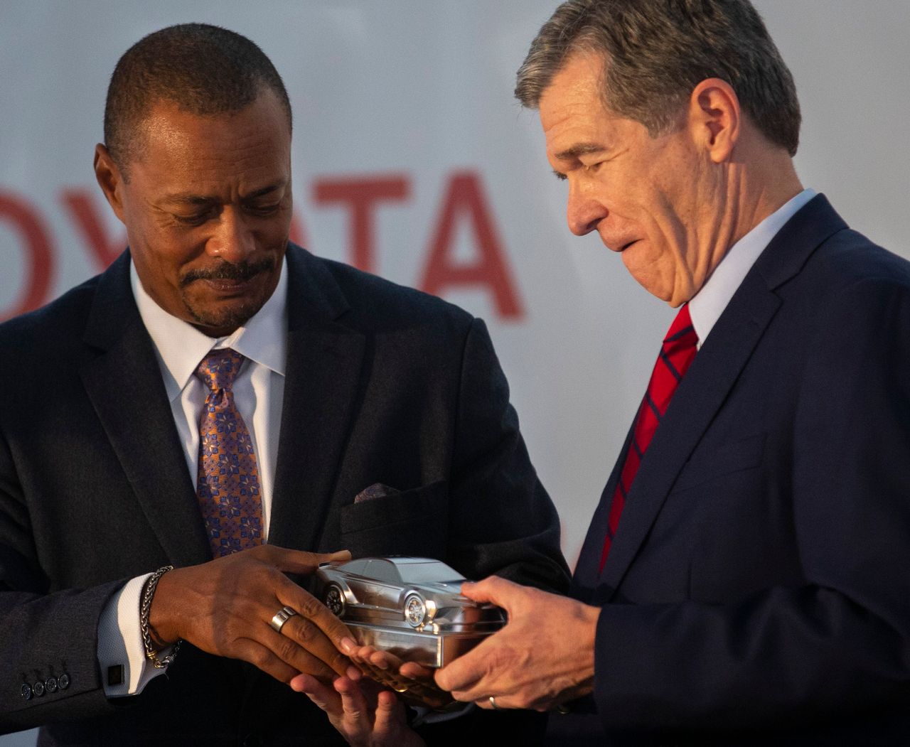 豐田汽車行政官克里斯·雷諾茲(左)在12月宣佈公司於北卡羅來納州自由城新建電池製造廠時,向州長羅伊·庫珀贈送了一輛賽車模型。圖片來源:Kenneth Ferriera/News & Record/美聯社辦公傢俱製造商Steelcase公司仍將總部和部分生產設施保留在密歇根州大急流城。但首席營收官艾倫·史密斯表示,多年來其製造業務和員工分佈已擴展至美國其他地區及全球。該公司目前最大的工廠位於阿拉巴馬州雅典市,並在德克薩斯州麥卡倫和聖地亞哥設有運營中心,與墨西哥最新的北美工廠協同運作。