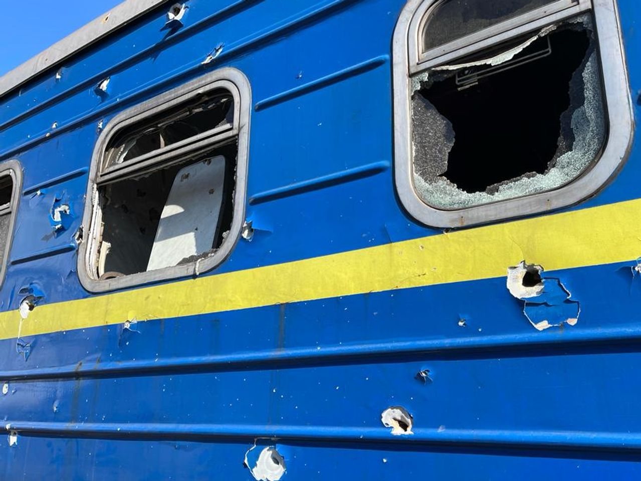 一列前往烏克蘭伊爾平疏散的客運列車被俄羅斯導彈擊中。照片:烏克蘭鐵路公司提供刊登於2022年6月17日印刷版,標題為《鐵路工人是烏克蘭的"第二軍隊”》。
