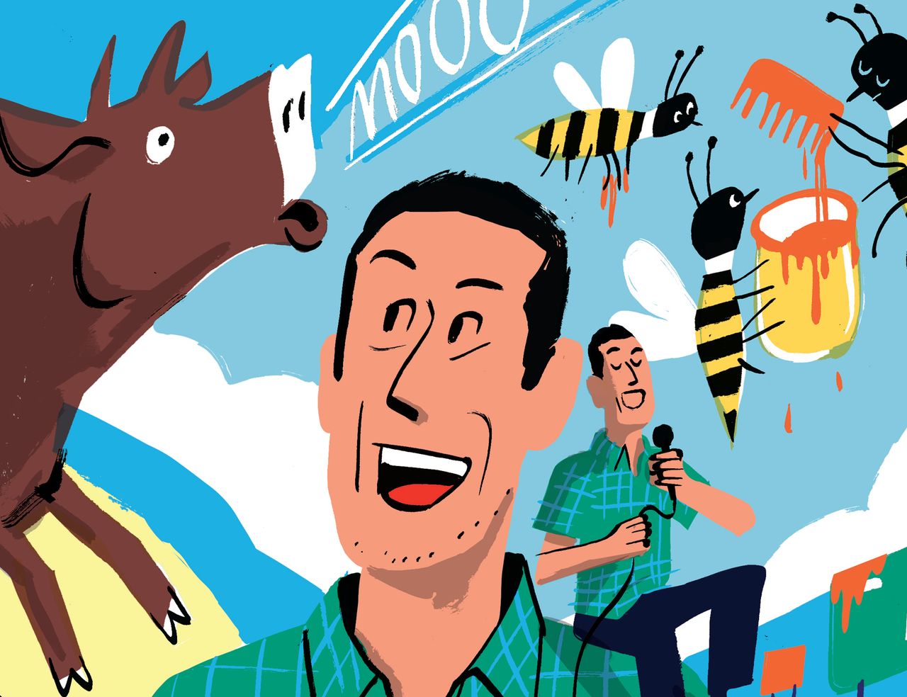 插圖:若昂·法曾達無論多成功,爸爸笑話都宣告着父母酷炫時代的終結。我的酷炫時代從未開始——自12歲起我基本就是人形工裝短褲——但沒有什麼比成年人重新欣賞笨拙幽默更能證明中年已至。