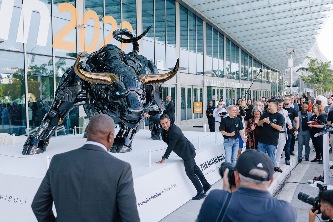 今年早些時候,邁阿密加密貨幣大會吸引了逾2.5萬人參與,全城活動不斷、派對無休。市長弗朗西斯·蘇亞雷斯為一隻11英尺長、3000磅重的黑色科技風公牛雕塑揭幕,與紐約著名華爾街銅牛打擂台。會展中心的核心展品是一座噴着煙霧的巨型紙漿火山。範思哲豪宅派對則安排了現場音樂與花樣游泳表演。