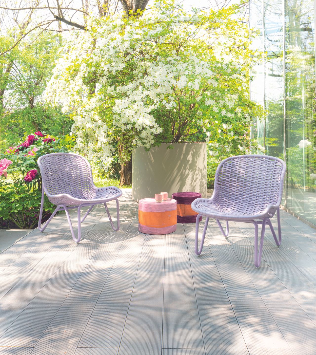 隨着越來越多人將户外空間視為私人雕塑花園,造型別致的獨家釉面陶瓷傢俱正為生活增添藝術氣息。“它們既耐用耐候…又能營造富有靈魂的視覺效果,“裏沃利女士説道。我們調研的設計師們尤其推崇荷蘭設計師Floris Wubben的質樸壓模作品,以及加州太陽谷藝術家Bari Ziperstein旗下BZIPPY品牌設計的迷幻雲朵邊幾(如圖)。“這是對傳統造型的現代演繹,“柯里女士評價道。