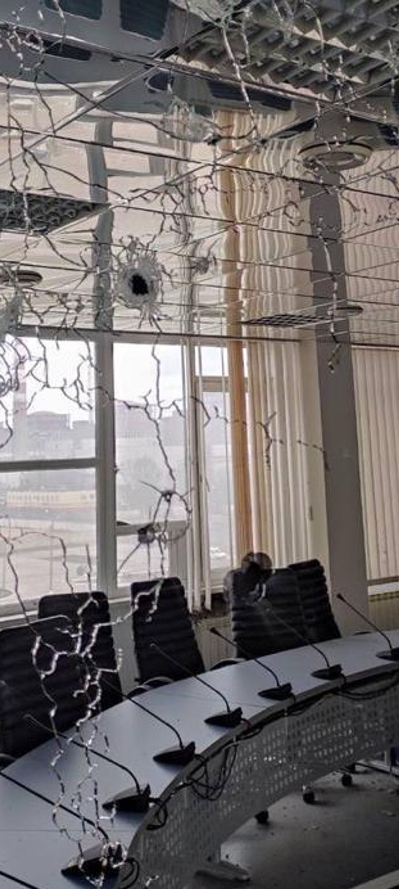 子彈擊穿了核電站的窗户,在牆壁上留下彈痕。圖片來源:烏克蘭國家核電公司Energoatom新聞處### 權力爭奪