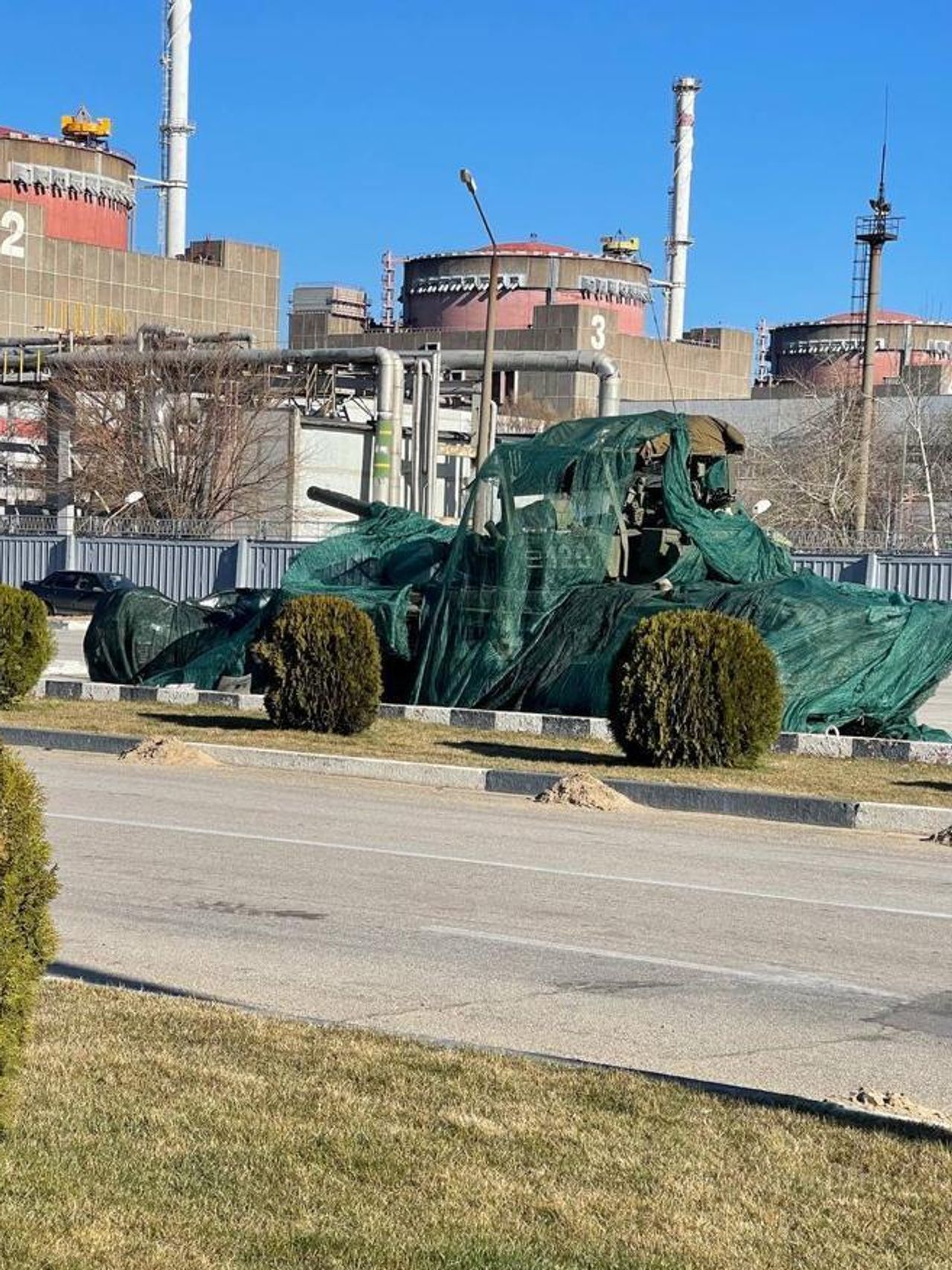 數十輛俄軍坦克和裝甲車覆蓋着偽裝網,駐紮在核電站周圍。圖片來源:烏克蘭國家核電公司Energoatom新聞處每天清晨,核電站都會致電烏克蘭國有核電公司Energoatom,彙報兩座運行反應堆的發電量,以及俄軍新增駐兵和坦克數量。