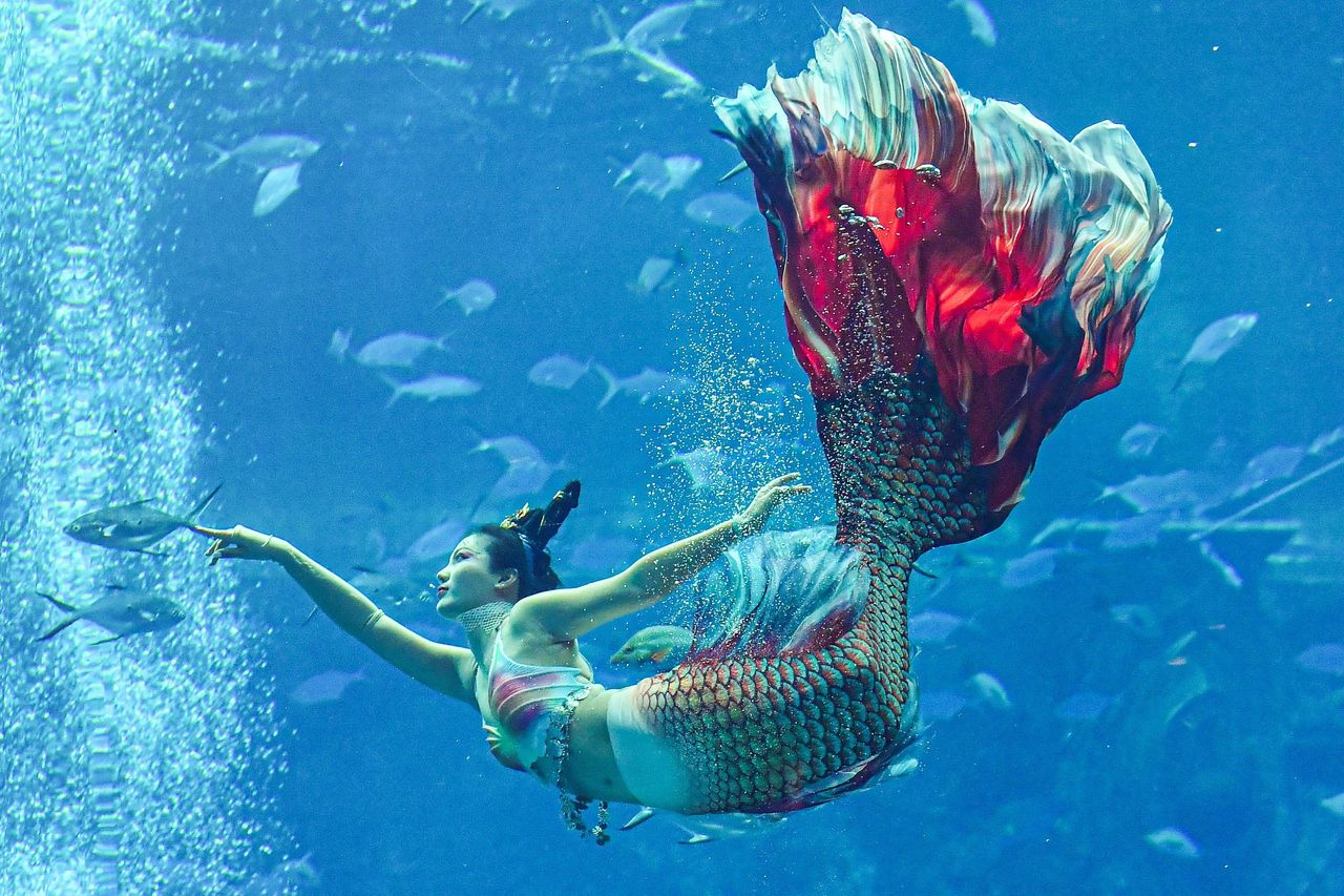 2021年12月中國某美人魚比賽中的參賽者。圖片來源:蒲曉旭/新華社/Zuma Press**聯繫方式:**Liyan Qi,郵箱:[email protected]