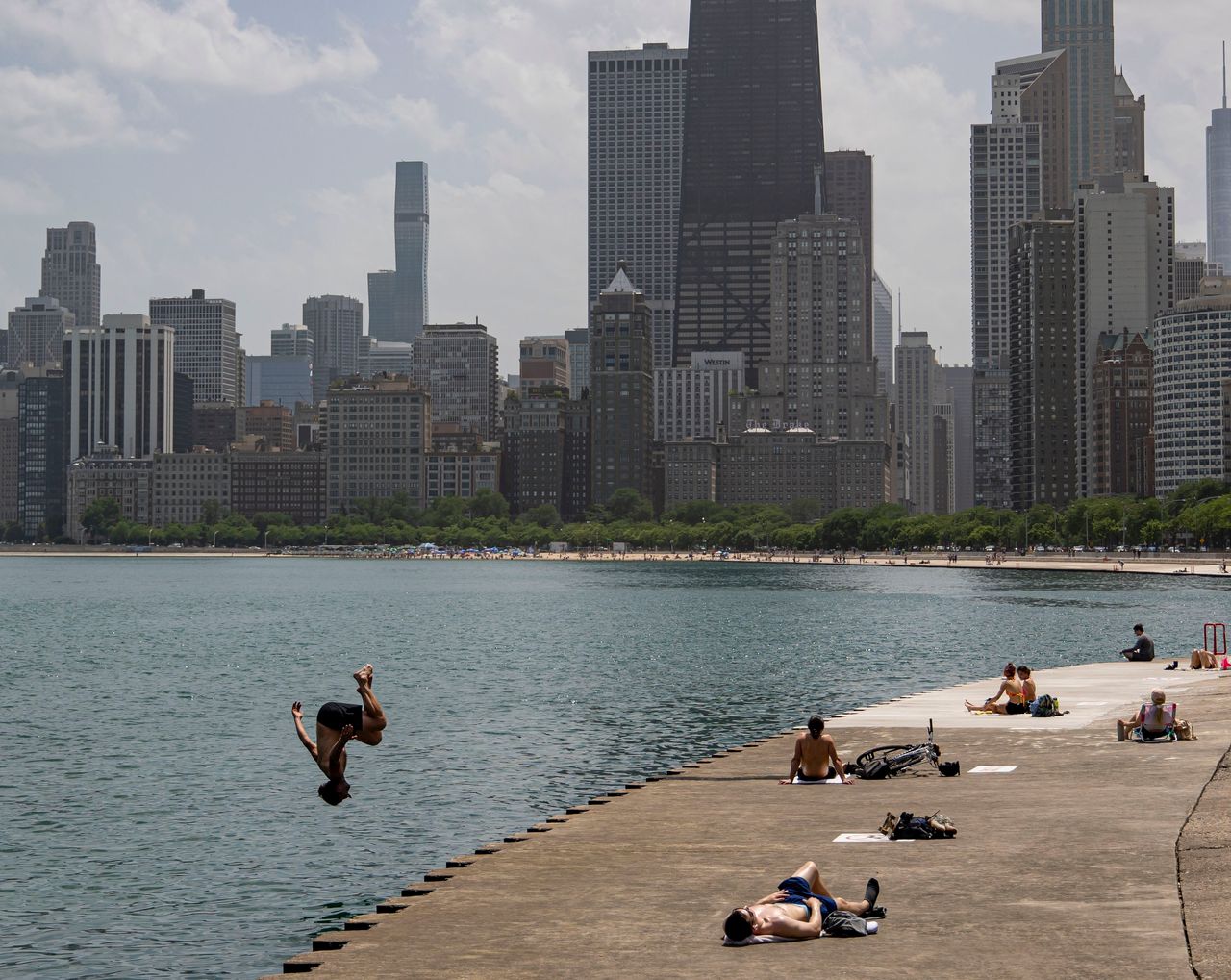 芝加哥正經歷氣温劇烈波動。週六相對温和,但預報顯示該市將很快重返週三促使一名男子跳入密歇根湖的90多度高温。圖片來源:Brian Cassella/Associated Press切納德表示,6月15日創下96度歷史新高的芝加哥,週六不太可能達到70度。他説,到週一,城市氣温將回升至90多度。