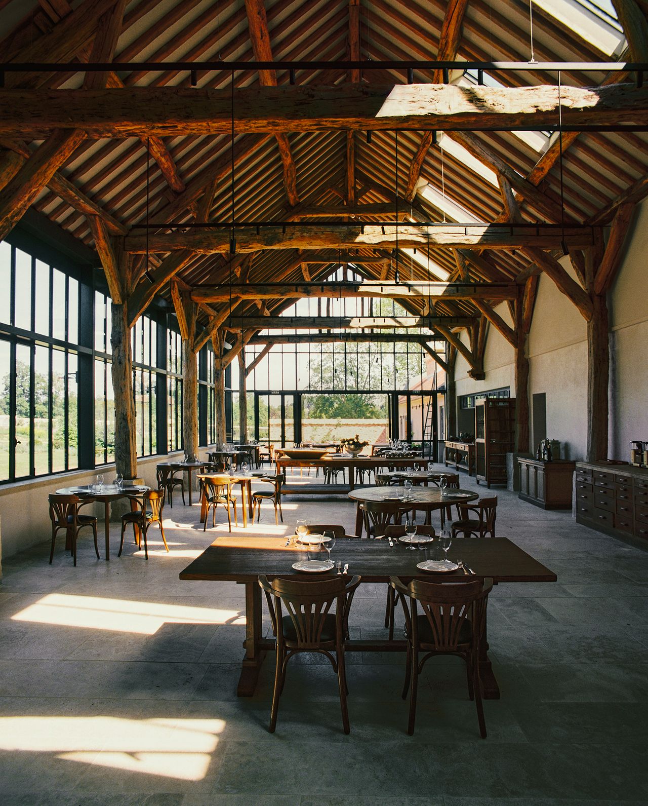 一張復古圓形沙發。與此同時,廚師們保持聯繫並開始共同構思一個概念。工作節奏的放緩讓他們有了規劃的精神自由,尤其是凱莉投入了大量時間研究農業。在休息日,他們會騎自行車穿越巴黎郊區尋找廢棄倉庫。最初的想法是找到一個帶有户外空間的工業建築來開一家新餐廳。然而,在參觀了位於巴黎以南45分鐘車程的15世紀鄉村莊園聖夫蘭城堡後,他們改變了主意。“那裏有很多土地,肖恩因此萌生了一個非常農業化的想法,“亨利説。“這從多個層面觸動了他,無論是農業還是哲學層面,以及我們在地球上的生活方式。”