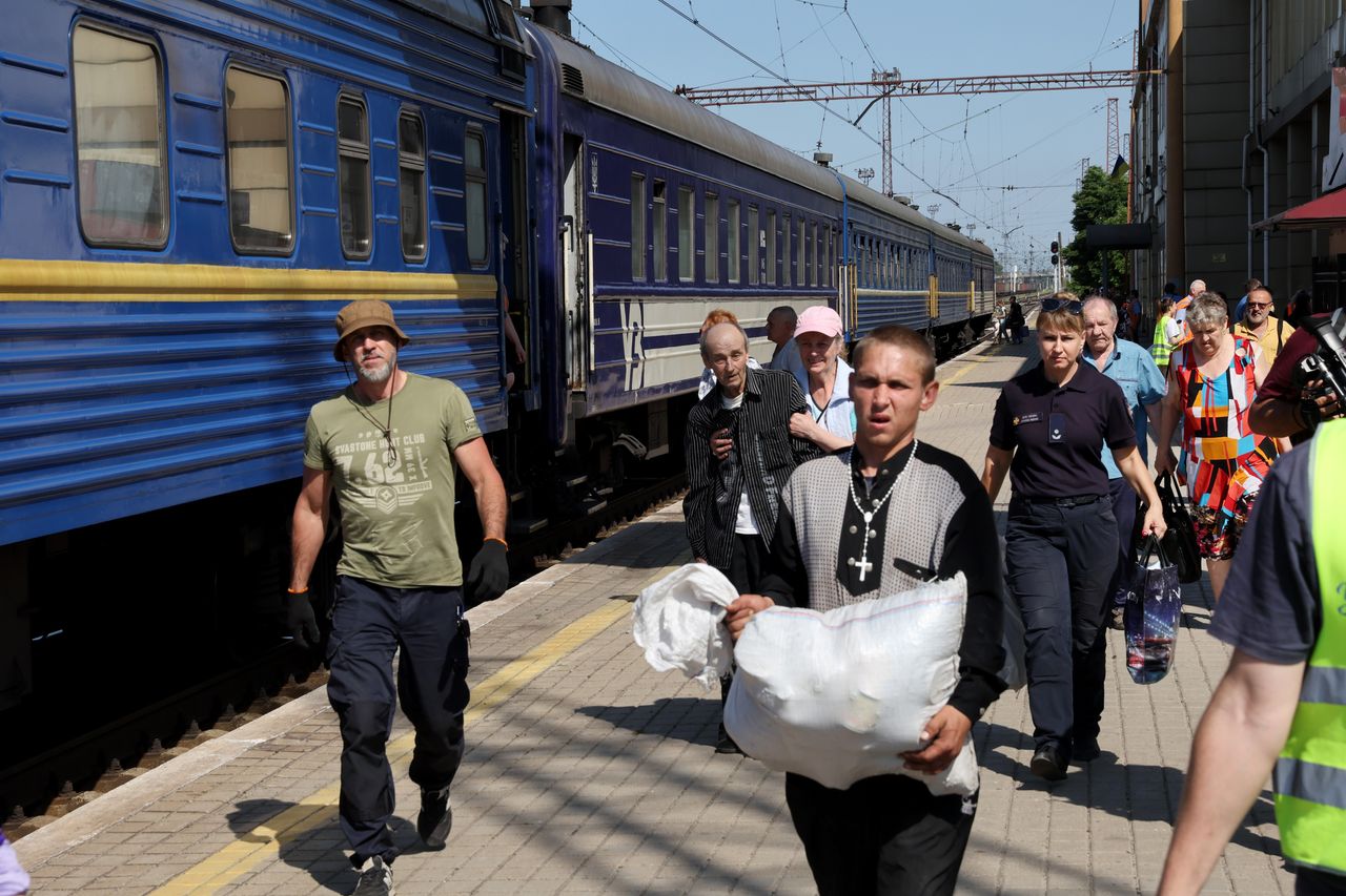 週一,在烏克蘭波克羅夫斯克火車站,人們試圖逃離烏克蘭東部的戰鬥。圖片來源:Scott Olson/Getty Images“如果我們認真幫助解決糧食危機,就必須認真保衞港口,”他表示,“不幸的是,沒有其他辦法。”