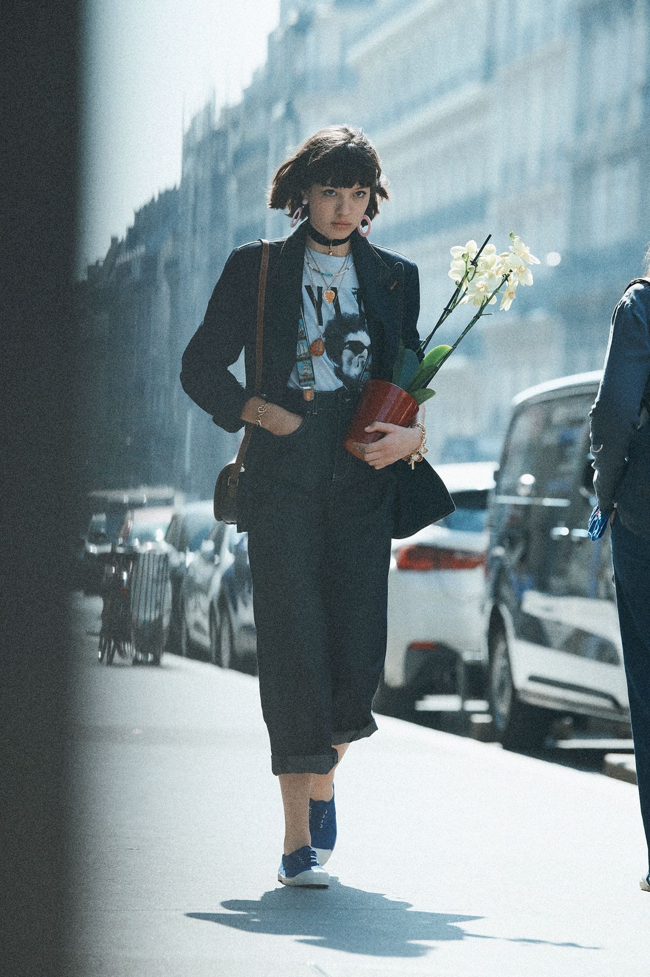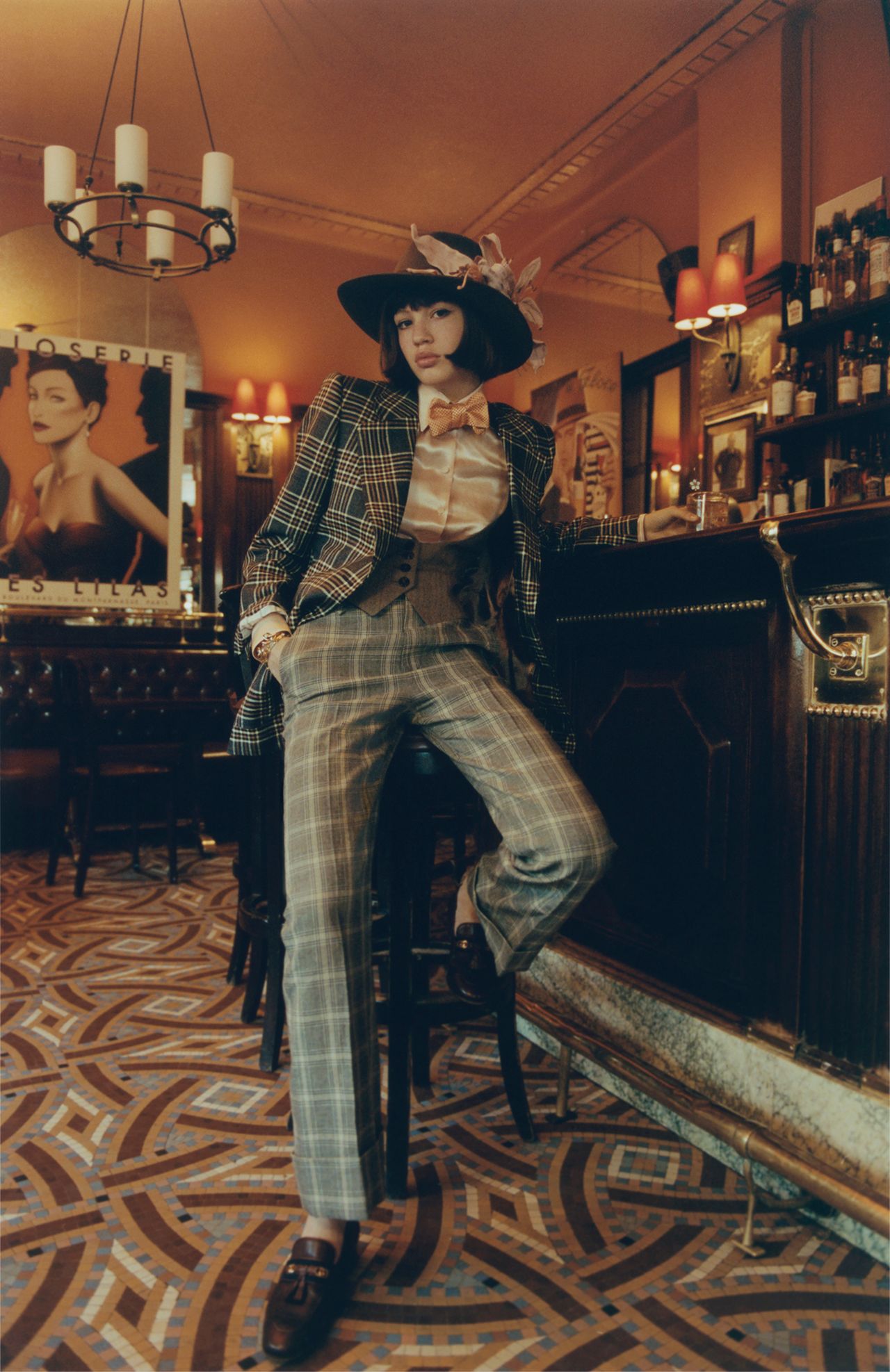 Emporio Armani夾克,1,025美元,褲子,575美元,Armani.com,復古T恤,價格需諮詢,BoyLooveGirl.com,Kiliwatch揹帶,價格需諮詢,Kiliwatch-Paris.com,Hedi Slimane設計的Celine包,1,550美元,Celine.com,Bensimon鞋,50美元,Bensimon.com,Harpo項鍊,165美元,Harpo-Paris.com,Dary’s復古項鍊,價格需諮詢,Darys-Bijouterie-Paris.fr,Rouje項鍊,185美元,Rouje.com,Mokuba絲帶,價格需諮詢,精選Mokuba精品店,PDPAOLA耳環(作為吊墜佩戴),135美元,PDPaola.com;左臂:愛馬仕手鐲,22,600美元,Hermes.com,Aurélie Bidermann手鐲,430美元,AurelieBidermann.com,Goossens Talisman手鐲,698美元,Goossens-Paris.com;右臂:Salvatore Ferragamo手鐲,650美元,Ferragamo.com。