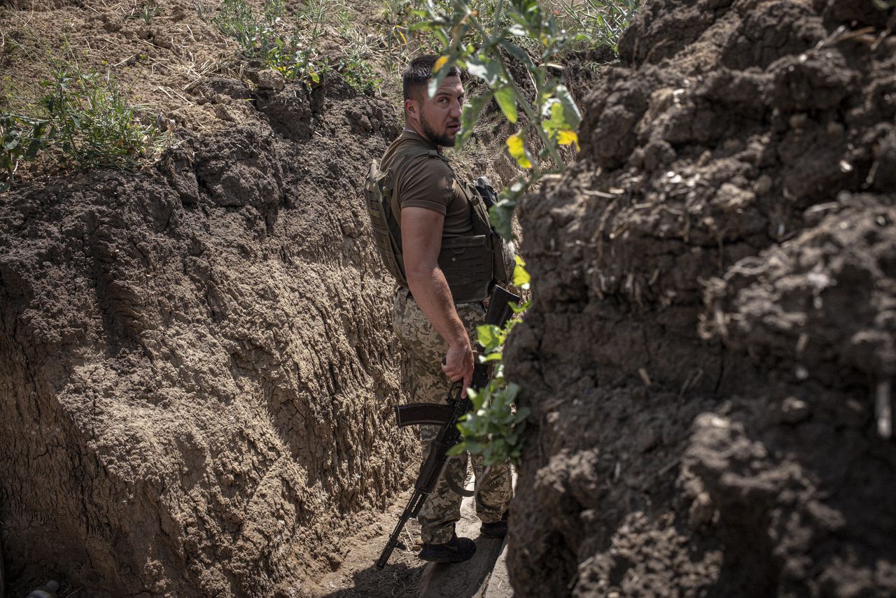 一名烏克蘭士兵在巴斯丹卡村附近的路邊掩體中。圖片來源:Guillaume Binet/MYOP for The Wall Street JournalBojan Pancevski對本文亦有貢獻。