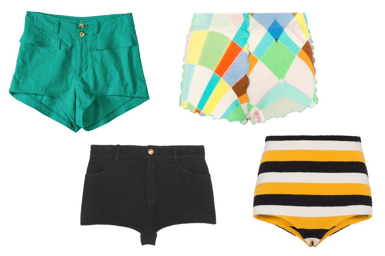 過去一年左右,熱褲正重新殺回時尚界,既作為調情式家居服出現在Instagram動態中,也現身各大設計師系列。古馳推出極繁主義蕾絲版本,普拉達(如圖)設計似1950年代風格泳裝,洛杉磯新鋭品牌Ciao Lucia採用多色毛巾布搭配同款夾克與抹胸上衣徹底復古。從伊莎貝爾·瑪蘭到美國鷹牌,每個品牌都有牛仔款演繹。尤為短小的是Y/Project的款式,宛如牛仔褲與比基尼底褲的混搭。