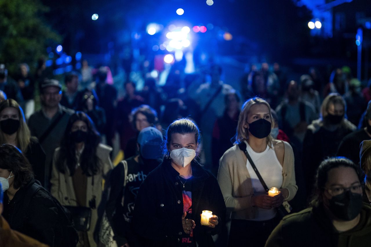 鑑於塞繆爾·阿利托大法官關於羅訴韋德案的意見草案遭泄露,兩位州長表示"該聯邦法規顯然適用”。抗議者正試圖影響最終裁決。揚金和霍根先生引述了諸如"若剝奪我們的選擇權,我們將發動暴亂"等言論,要求加蘭"確保這些住宅區的安全"並"按法律條文執行”。