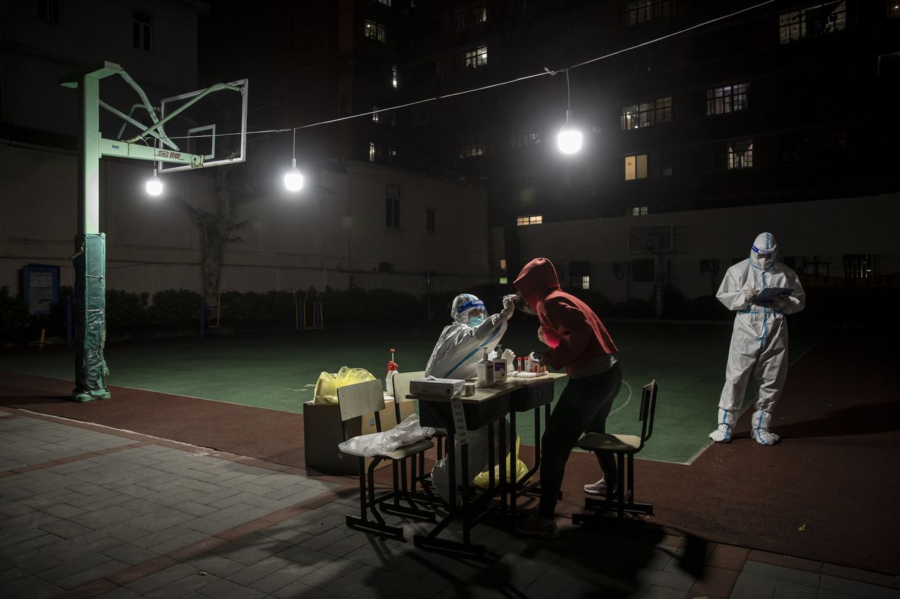 4月上海,工作人員正在採集新冠檢測拭子樣本。圖片來源:沈來騏/彭博新聞社上海的生活很適合她。這位37歲的財務經理擺脱了老家催婚催生的壓力。在上海,人們給了她更多空間。