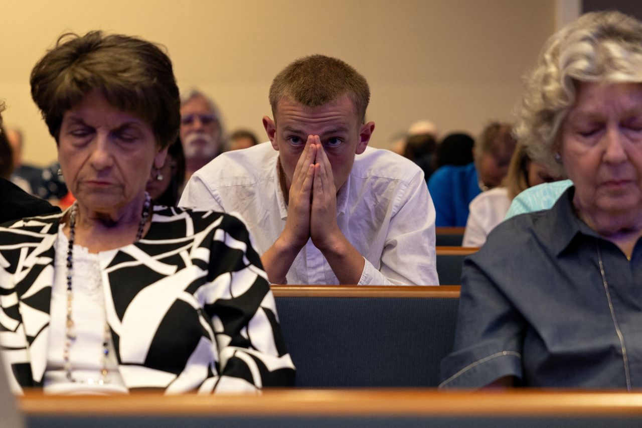 週日,達拉斯一座教堂的會眾在祈禱。許多教堂的佈道都提到了羅訴韋德案被推翻。照片:SHELBY TAUBER/REUTERS在德克薩斯州普萊諾的普雷斯頓伍德浸信會教堂,該教堂表示在三個校區擁有49,000名成員,禮拜者們起立為裁決鼓掌。