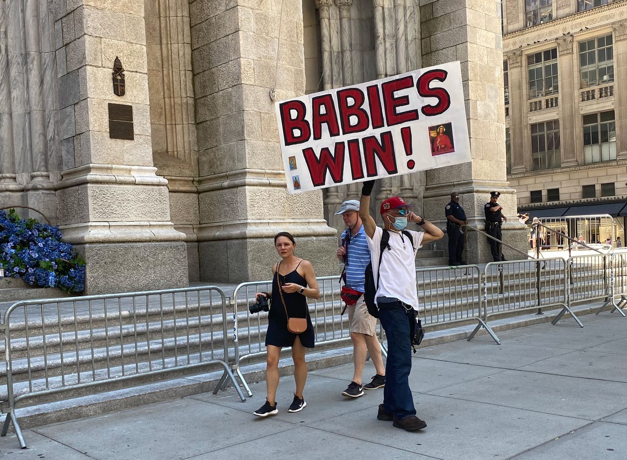 美國最著名的羅馬天主教堂之一,曼哈頓中城的聖帕特里克大教堂也傳達了類似的信息。恩裏克·薩爾沃神父避免直接提及最高法院的裁決,並呼籲寬恕那些犯錯的人,他説這包括終止妊娠的人。